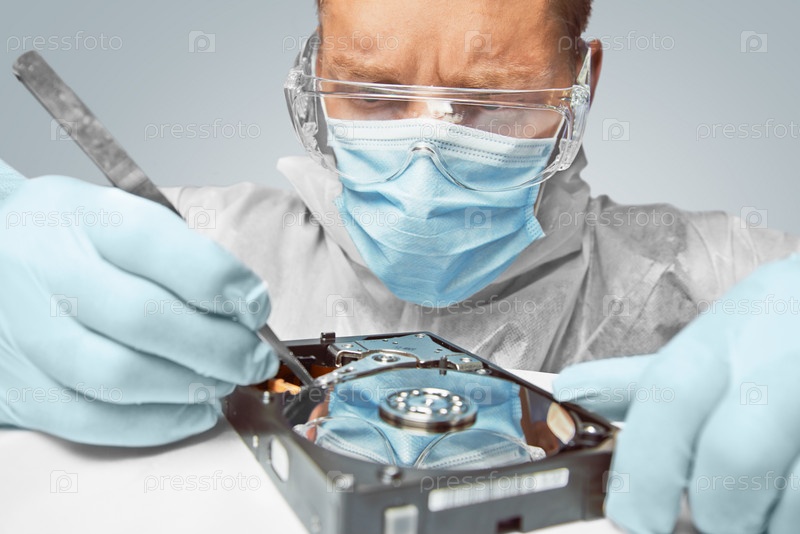 Человек проверяет жесткий диск