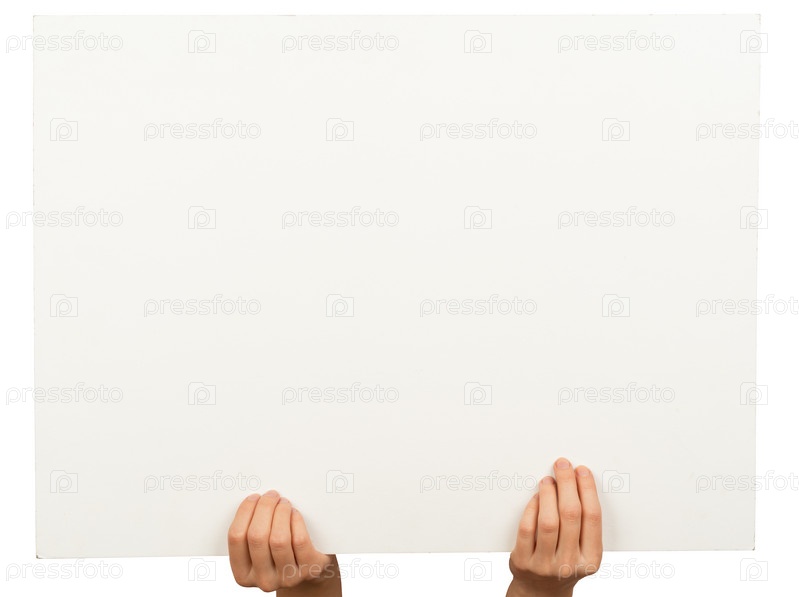 Женские руки держат пустой баннер