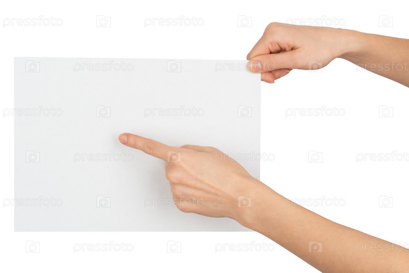 Рука женщины, указывая на чистый лист бумаги