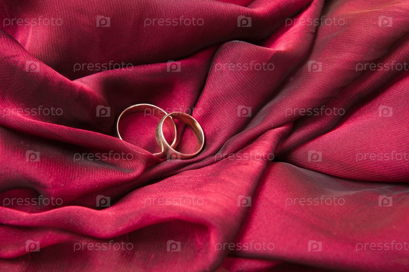 Обручальные кольца на красном фоне