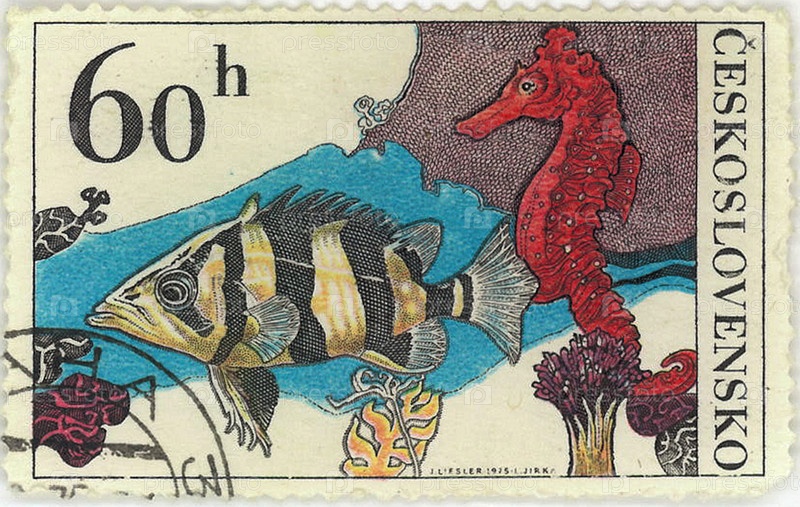 Почтовая марка Чехословакии с изображением рыб