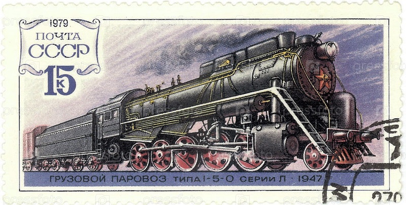 Почтовая марка СССР с изображением паровоза