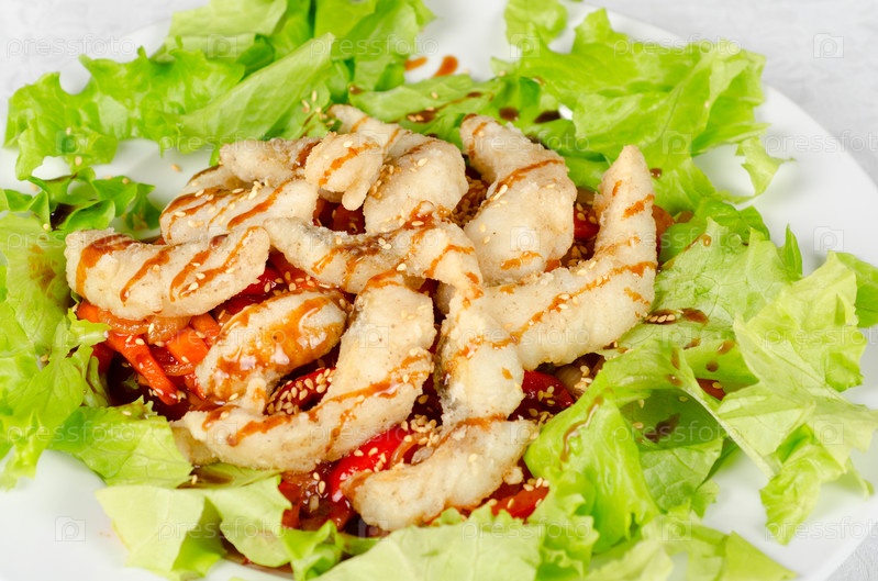 Филе жареного судака с овощами