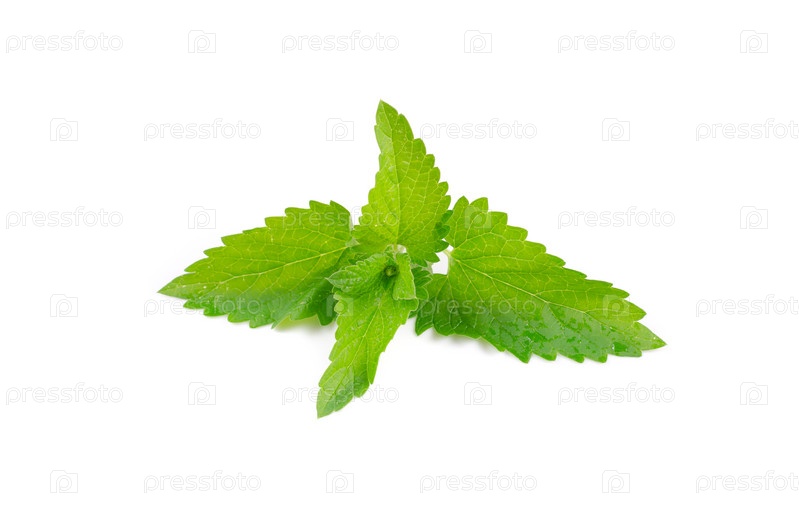 Свежие листья мяты на белом фоне