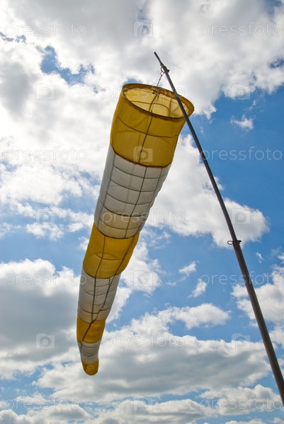 Ветроуказатель в небольшом аэродроме на фоне голубого неба