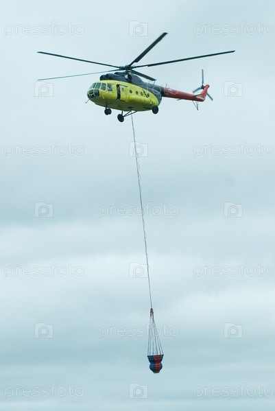 Вертолет Ми-26 с водяным баком для противопожарных миссий