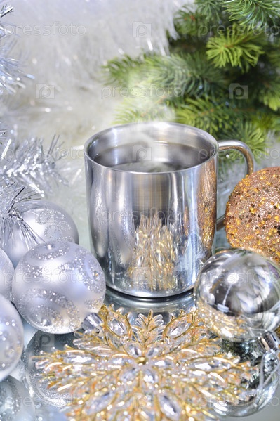 Рождественские украшения и кружка горячего кофе