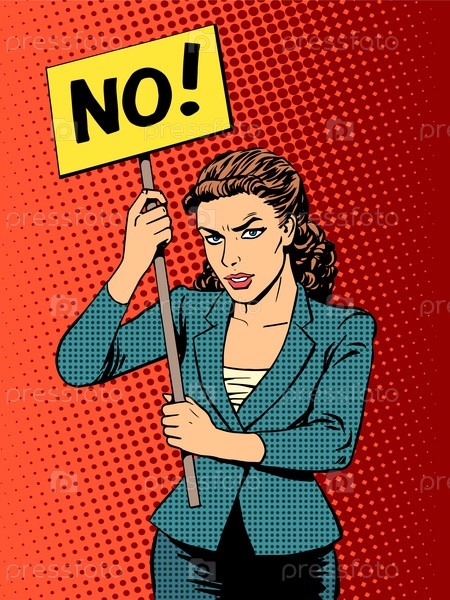 Деловая женщина держит табличку с надписью "нет"