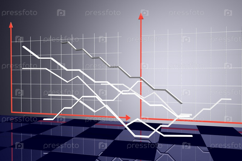 Экономический график с пятью кривыми на сером фоне
