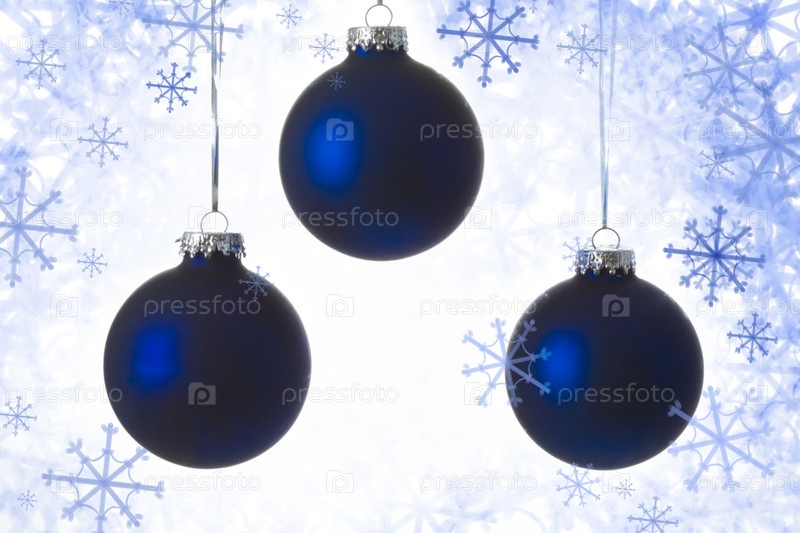 Близкий план трех голубых шаров на рождественском фоне