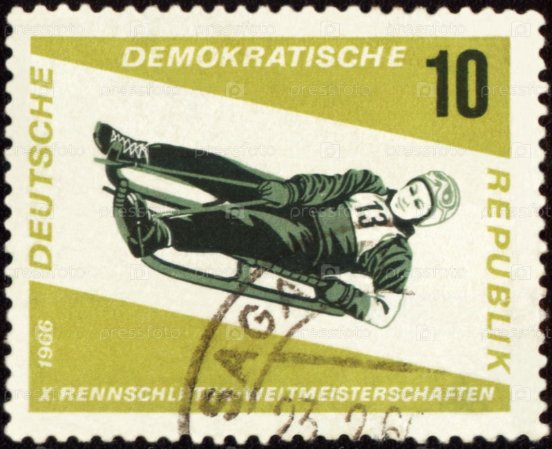 Марка ГДР с изображением спорта на санях