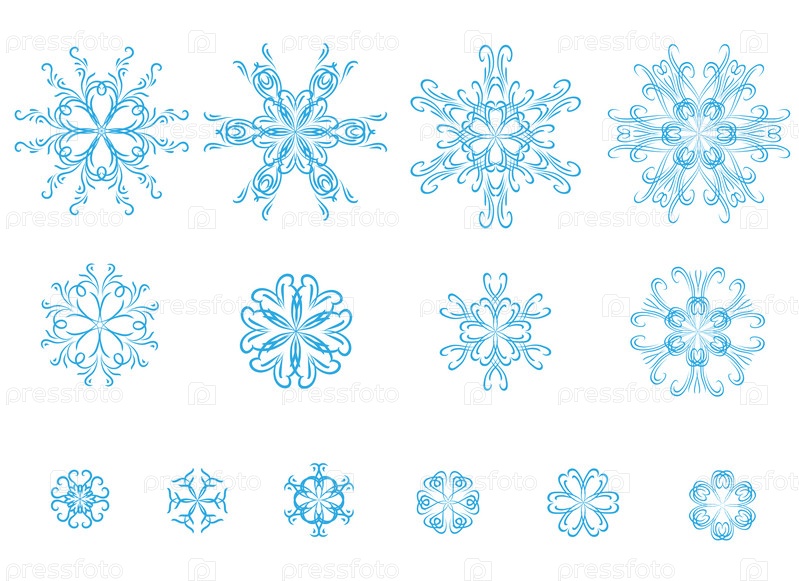Коллекция голубых векторных снежинок на белом фоне