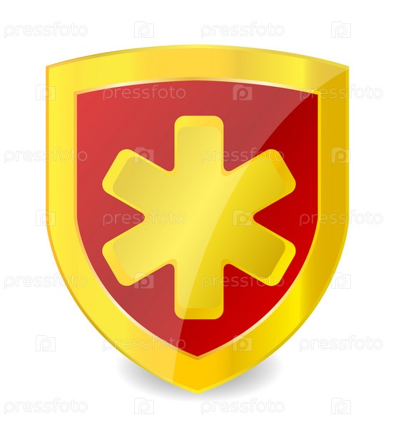 Красный щит с золотой каймой и звездой на белом фоне