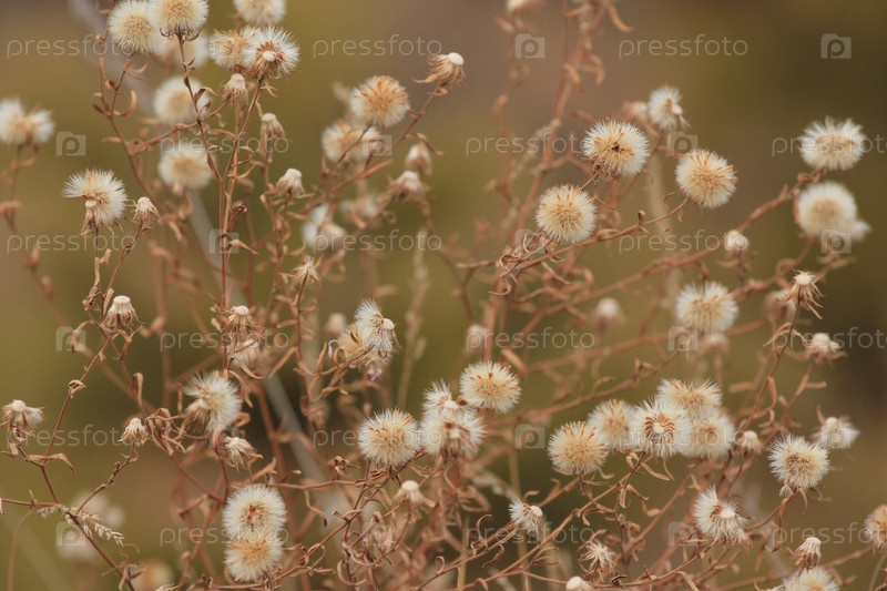 Сухой куст с цветами крупным планом