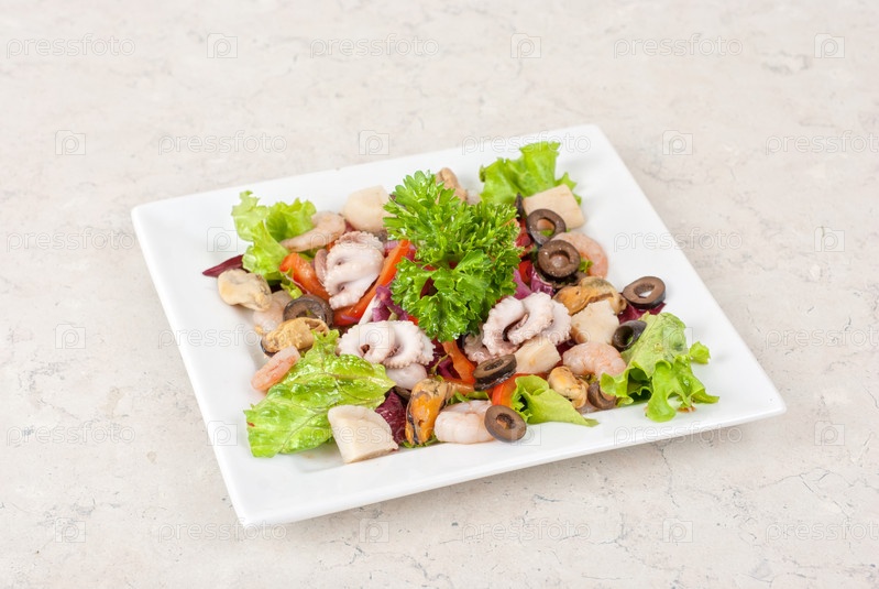 Закуска из различных морепродуктов и овощей