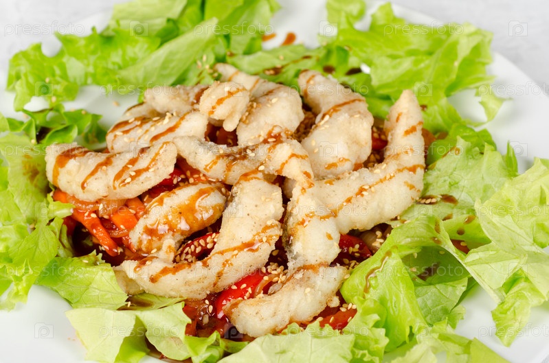 Жареное филе судака с овощами
