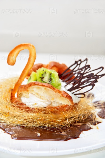 Сладкий пирог в форме лебедя крупным планом