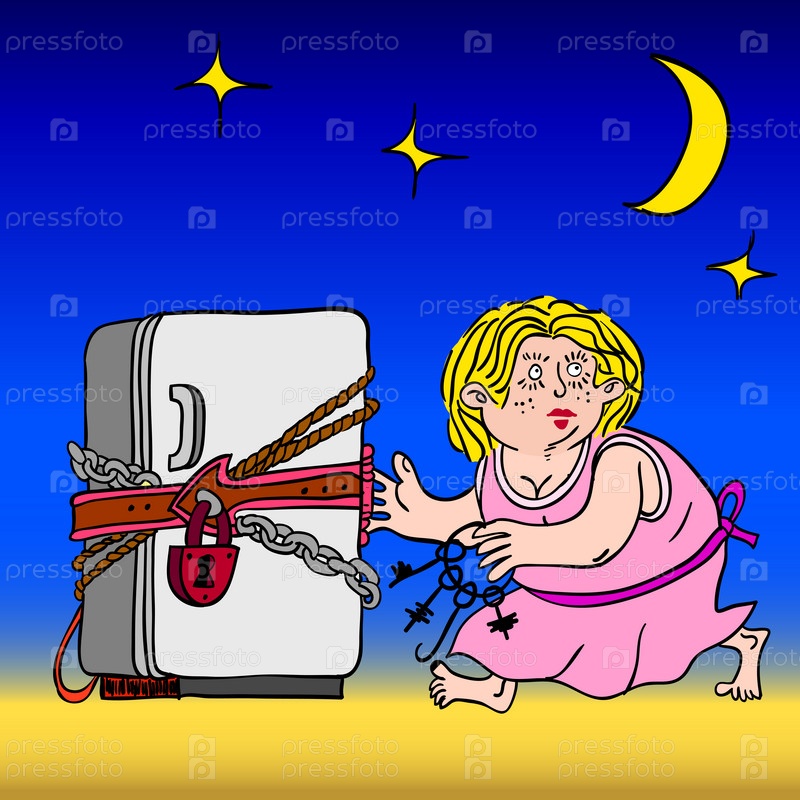 Женщина со связкой ключей перед закрытым холодильником