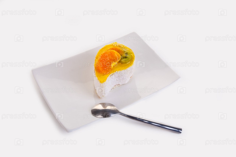 Пирожное с фруктами на блюде