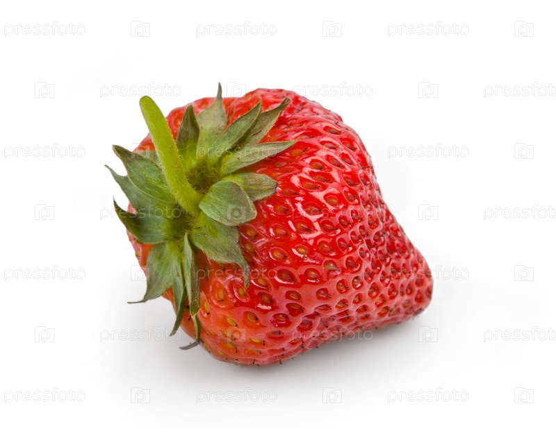 Спелая ягода клубники крупным планом. Изолированная на белом фоне