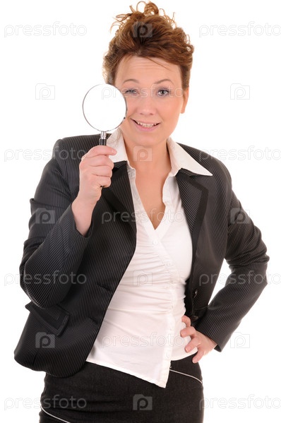 Счастливая женщина с лупой в руке