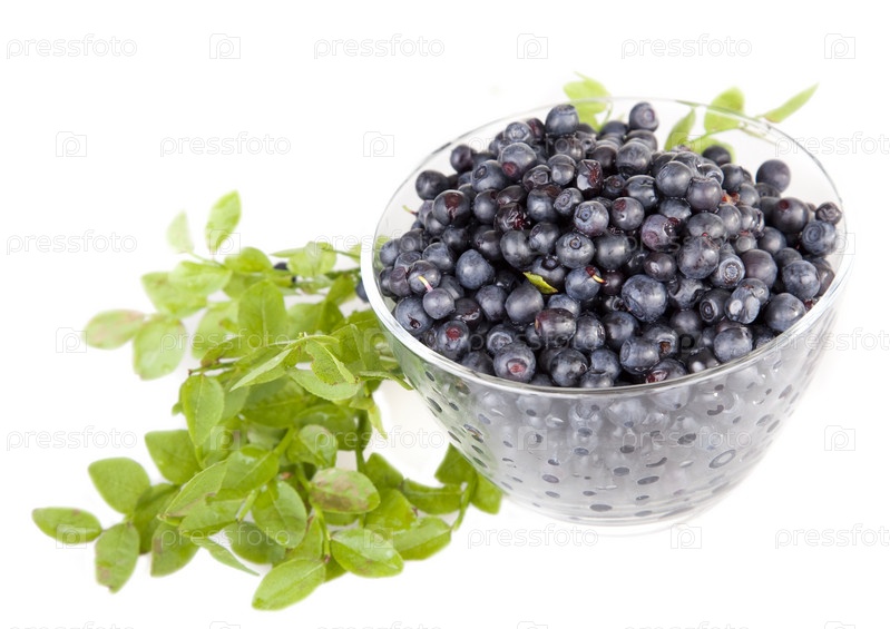 Черника в стеклянной миске на белом фоне