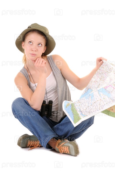 Привлекательная молодая женщина с картой в руке