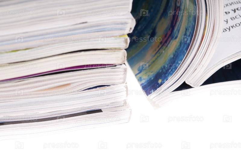 Стопка журналов на белом фоне