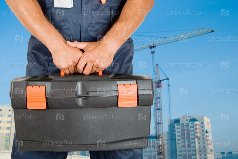 Рабочий с коробкой инструментов