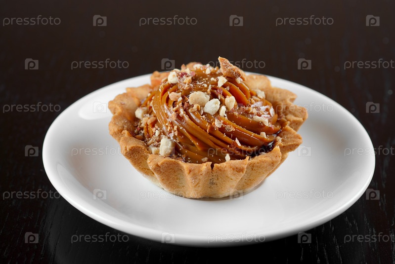 Пирожное с орехами на тарелке