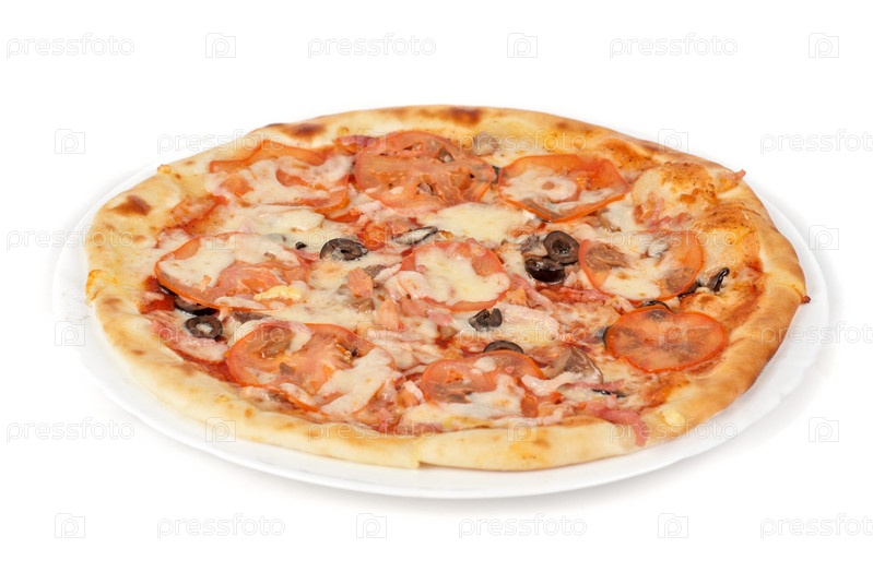 Пицца с ветчиной, помидорами, оливками и сыром моцарелла