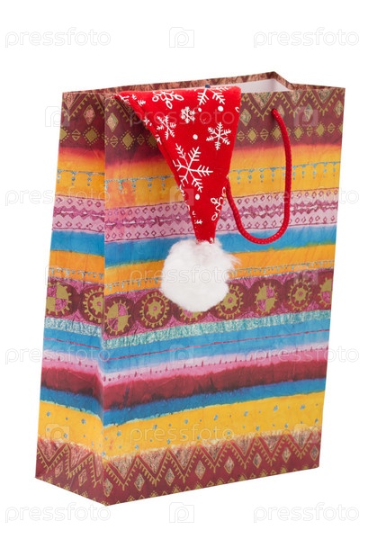 Пакет с подарками и колпаком Санта-Клауса