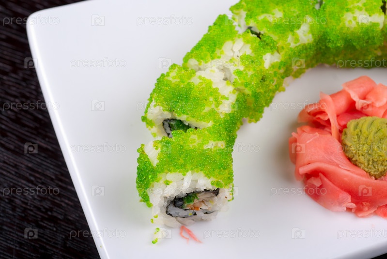 Суши из лосося, авокадо, тобико и сыра филадельфия