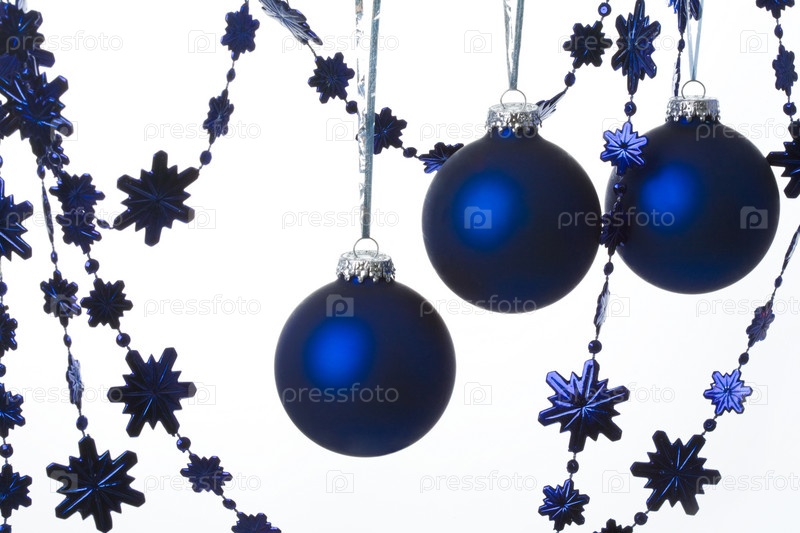 Изображение синих игрушечных шаров и декоративных гирлянд для рождественской елки