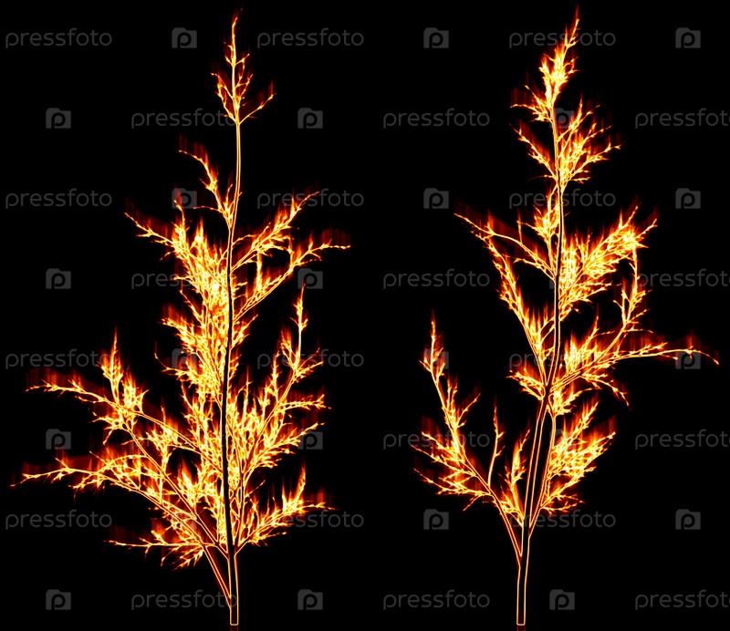 Деревья, нарисованные огнем, на черном фоне