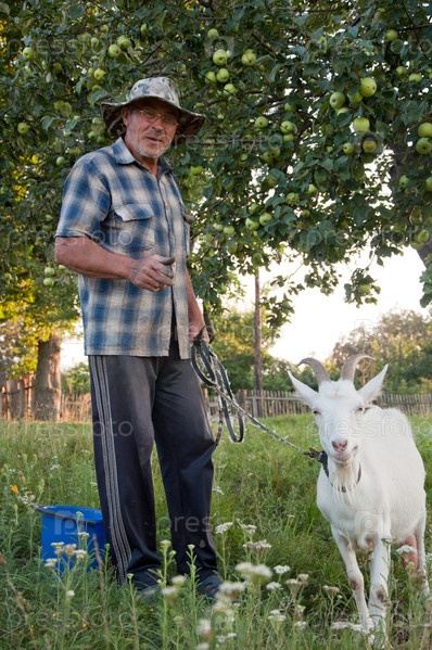 Пожилой мужчина с козой