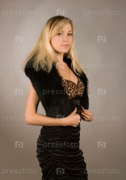 Красивая девушка в платье и меховом манто