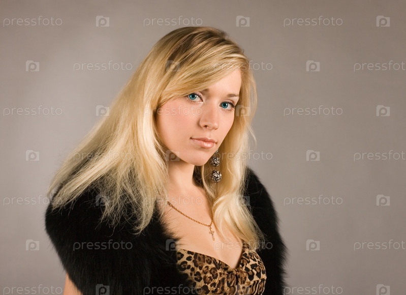 Красивая девушка в платье и меховом манто