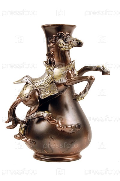 Ваза со скульптурным изображением лошади на белом фоне