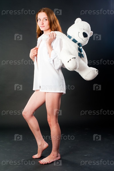 Красивая девушка с белым мишкой
