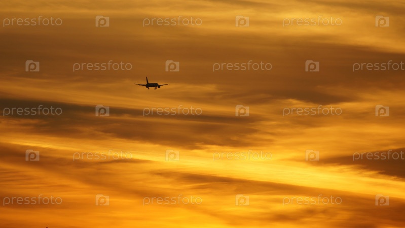 Закатное небо и маленький летящий самолет