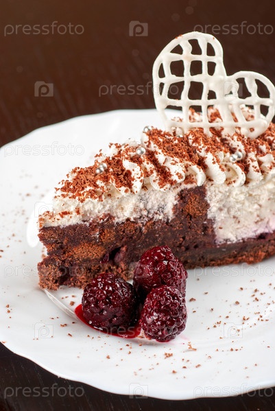 Свежий вкусный торт крупным планом с ежевикой на белой тарелке