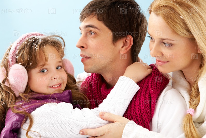 Семья из трех человек зимой на природе