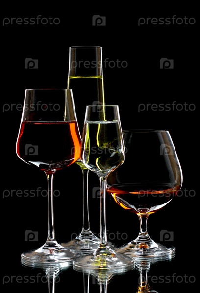 Фужеры различной формы на черном фоне
