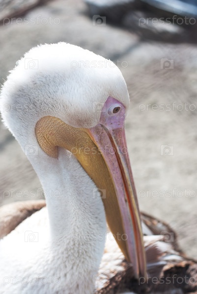 Большой белый пеликан (Pelecanus onocrotalus) в крупном плане