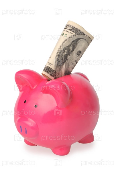 Розовая свинья-копилка на белом фоне