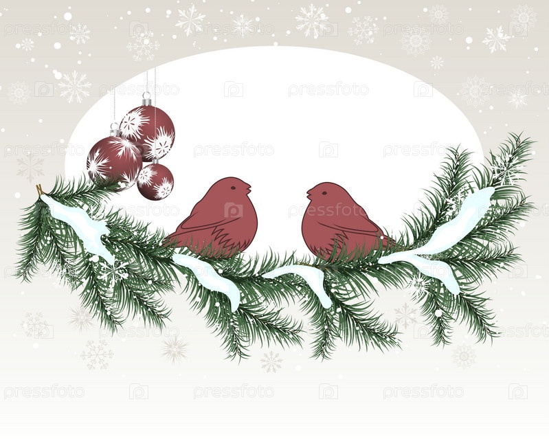 Рождественская картинка. Снегири на ветке