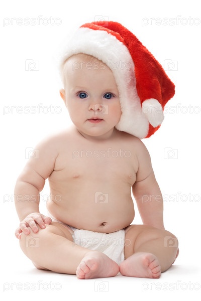 Портрет сладкого ребенка, носящего шляпу Санты изолированный на белом фоне