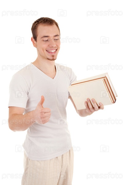 Довольный молодой человек с книгами