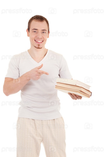 Довольный молодой человек с книгами